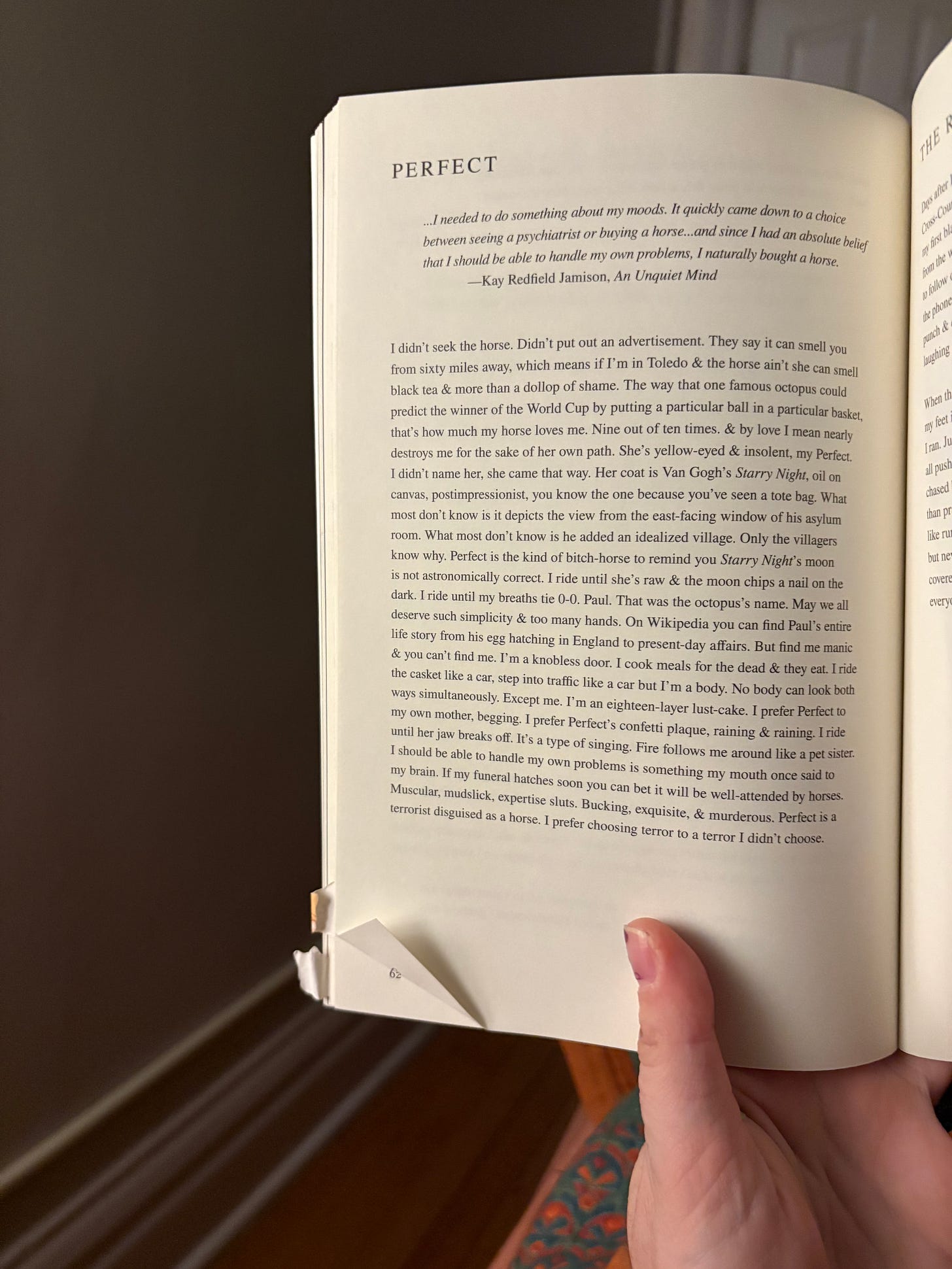 I remembered why every word in by Diane Seuss feels intentional and like a part of a giant 4D puzzle. FRANK: SONNETS blows my mind every couple of months when I decide to pick it back up and refresh myself with why I write.